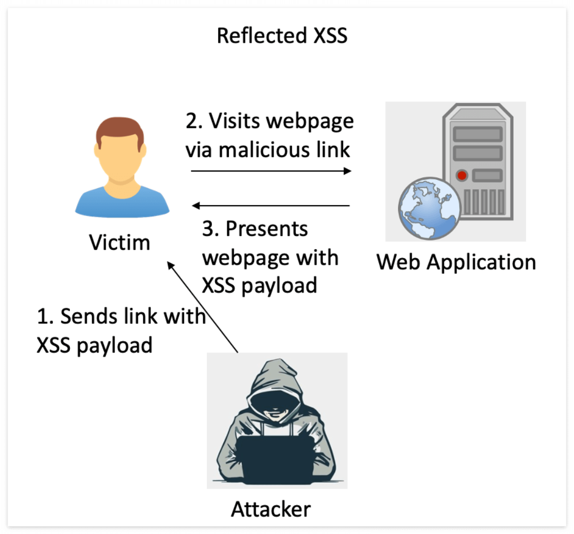 - Reflected XSS는 악성 스크립트를 포함한 URL을 통해 공격하는 링크 전달 공격이다.