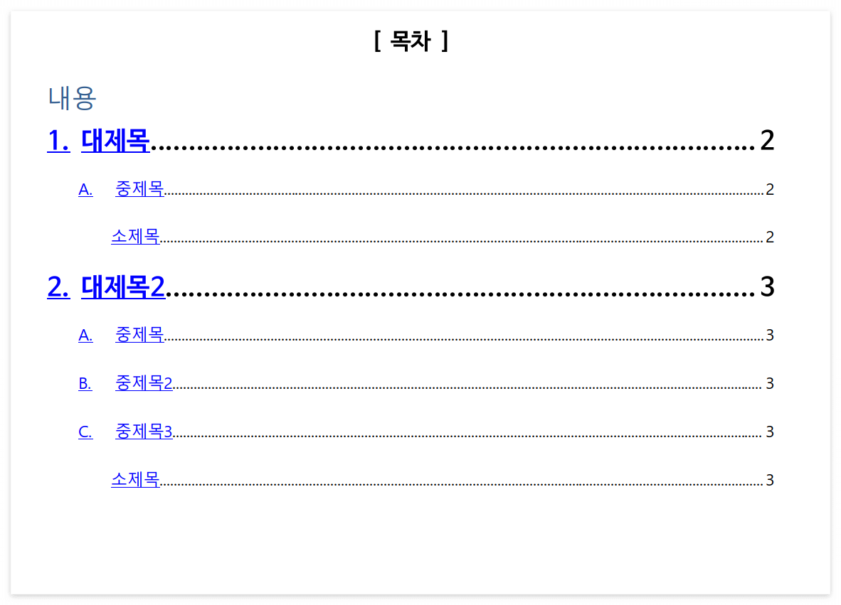 - 깔끔한 제목, 목차 명시