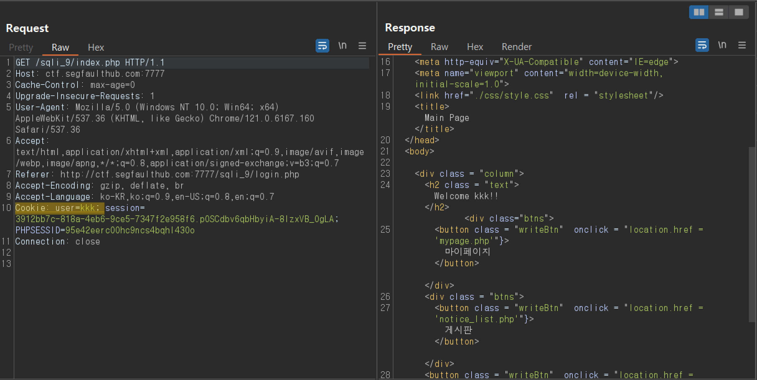 - 클라이언트 측의 정보는 수정할 수 있으므로 이 때 user를 변경하면 해당 계정으로 로그인이 가능하게 된다.